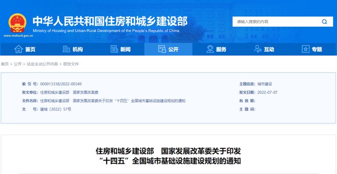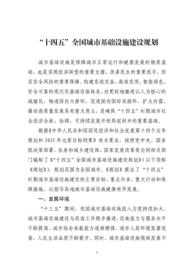 住建部、發改委印發實施《“十四五”全國城市基礎設施建設規劃》