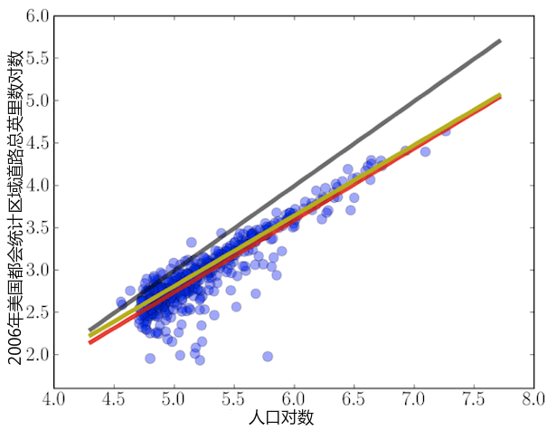 他們使用大量數(shù)據(jù),與同僚系統(tǒng)構(gòu)建起一個(gè)城市可量化特征的體系:道路網(wǎng)絡(luò)的長(zhǎng)度、居民的平均收入、人均專利數(shù)量。正如埃米莉•巴杰(Emily Badger)去年所說(shuō),貝騰科特與韋斯特比較了城市人口增長(zhǎng)與這些特征之間的聯(lián)系,考察基礎(chǔ)設(shè)施如何增長(zhǎng)、社會(huì)經(jīng)濟(jì)產(chǎn)出與社會(huì)互動(dòng)如何相關(guān)、人口密度發(fā)展如何減少社會(huì)互動(dòng)的能源消耗。