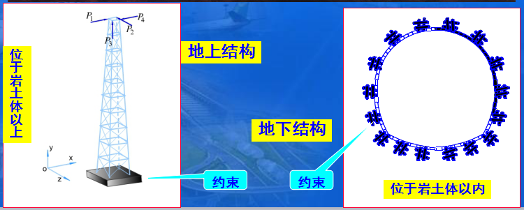 地下結構一般包括支護結構和周邊圍巖,支護結構主要用于約束底層、限制變形和坍塌,圍巖對支護結構有嵌固作用。