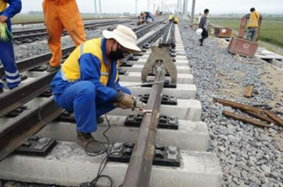 采用邊鋪設(shè)邊焊接的流水線作業(yè),夏天晚上施工,爭(zhēng)取搶在今年入冬前完成鋼軌焊接。