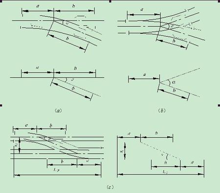 1.到發(fā)線與到發(fā)線連接應(yīng)采用側(cè)向允許通過速度為80KM/H的18號單開道岔。全部或絕大多數(shù)列車均停車的個別車站以及改、擴(kuò)建大型站特別困難條件下,可采用12號道岔。