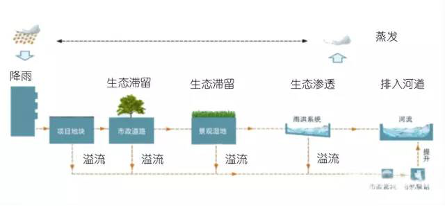 當雨峰值過大的時候,地面排水與地下雨水管渠相結合的方式來實現(xiàn)一般排放和超標雨水的排放,避免內(nèi)澇等災害。經(jīng)過雨水花園、生態(tài)滯留區(qū)、滲透池凈化之后蓄起來的雨水一部分用于綠化灌溉、日常生活,一部分經(jīng)過滲透補給地下水,多余的部分就經(jīng)市政管網(wǎng)排進河流。不僅降低了雨水峰值過高時出現(xiàn)積水的幾率,也減少了第一時間對水源的直接污染。