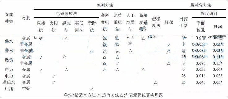 1) 各種管線類型最適宜探測方法的精度均能達到規范。