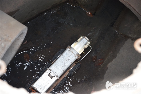 “這是我們的新幫手。”劉燕軍告訴星辰全媒體記者,下水井中充滿了有毒有害氣體,機器人下井確保了施工安全。通過人工遙控機器人,下水井中的工作界面能實時監(jiān)控,人工操作時很難知道的管道變形、破裂、滲水等問題一目了然。