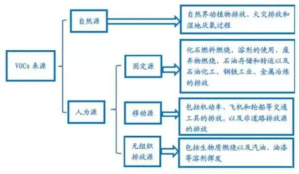 在眾多人為源中,工業(yè)源是主要的VOCs污染來源,具有排放集中、排放強度大、濃度高、組分復(fù)雜的特點。
