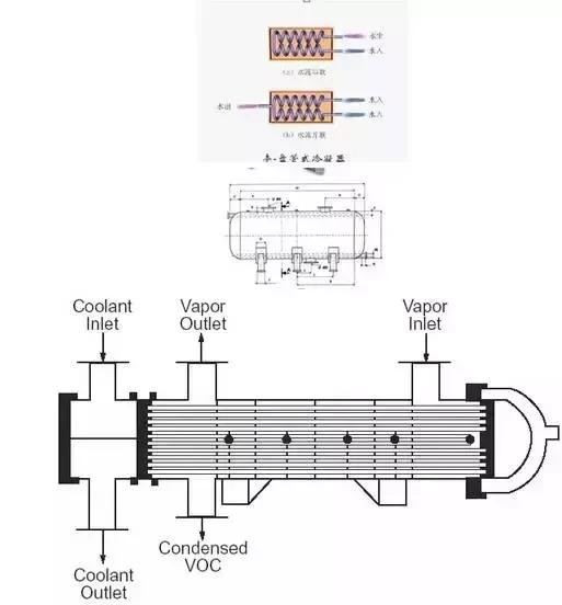 原理:冷凝將廢氣降溫至VOCs成份之露點以下,使之凝結(jié)為液態(tài)后加以回收之方法。