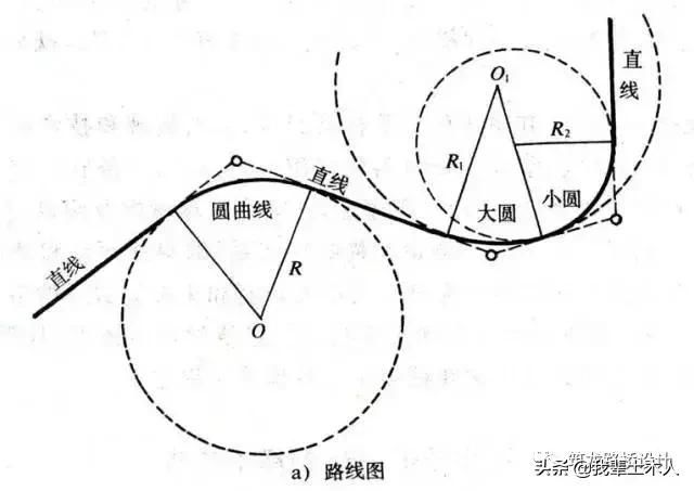 現(xiàn)代道路平面線形正是由上述三種基本線形構(gòu)成的,稱為平面線形三要素。