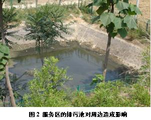 3、服務(wù)區(qū)場地技術(shù)層面存在的問題,一是運營中產(chǎn)生的廢棄物(包括廢水、生活垃圾)缺少必要的配套處理設(shè)施,導(dǎo)致服務(wù)區(qū)周邊污染;二是場地排水缺乏設(shè)計,由于區(qū)內(nèi)硬質(zhì)地面多,暴雨時容易造成局地暴雨徑流,而雨水本可以充分利用,彌補服務(wù)區(qū)自打井時常供水不足的問題,這在干旱、半干旱地區(qū)尤為重要(如圖2所示)。
