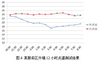5、服務(wù)區(qū)建筑設(shè)計技術(shù)層面存在的問題,就是基本上未考慮“四節(jié)一環(huán)保”的要求,因此根本上達(dá)不到國家《公共建筑節(jié)能設(shè)計標(biāo)準(zhǔn)》規(guī)定節(jié)能50%的要求,這從我們在實地調(diào)研中對幾個服務(wù)區(qū)綜合樓的熱工測試結(jié)果(如圖4所示)可以看得出來。