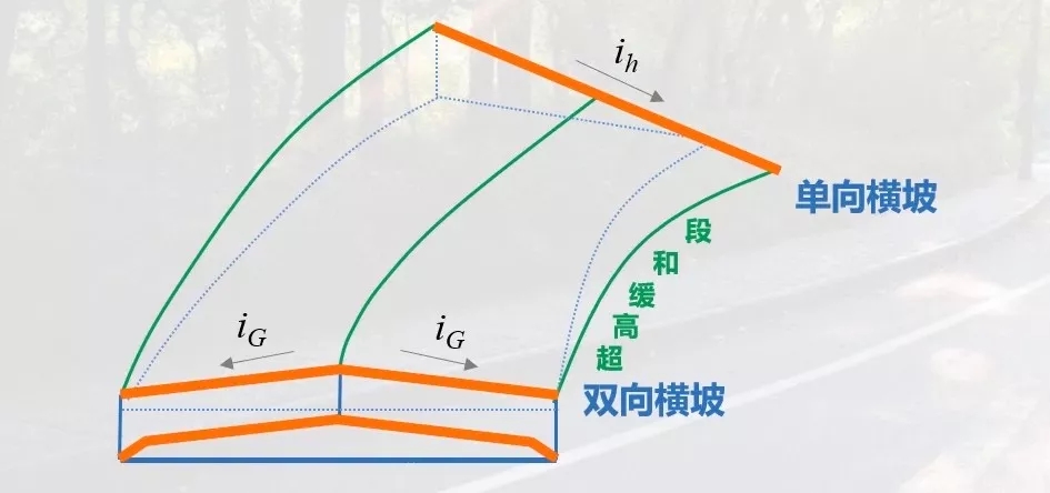 超高是指車輛在彎道上行駛,為了抵抗離心力的作用,常需要設(shè)置超高。即由直線路段的雙向橫坡路面通過(guò)超高緩和段過(guò)度到全超高的單向橫坡路段。