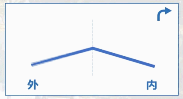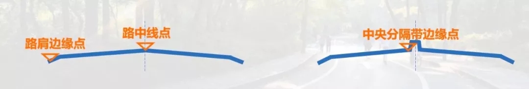 最后一個(gè)為了讓超高計(jì)算更加清晰,還需要明確橫斷面上的幾個(gè)代表點(diǎn),以道路左轉(zhuǎn)為例。有左側(cè)也就是內(nèi)側(cè)路肩邊緣、內(nèi)側(cè)路面邊緣、路中、和右側(cè)也就是外側(cè)路面邊緣、路肩邊緣這五個(gè)代表點(diǎn)。道路右轉(zhuǎn)同理。