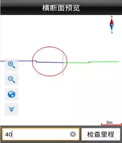 輸入40可以看見(jiàn)對(duì)應(yīng)左側(cè)機(jī)動(dòng)車道板塊坡度2%,朝上微微翹起(輸入對(duì)應(yīng)里程,點(diǎn)擊檢查里程,可查看對(duì)應(yīng)里程橫斷面)