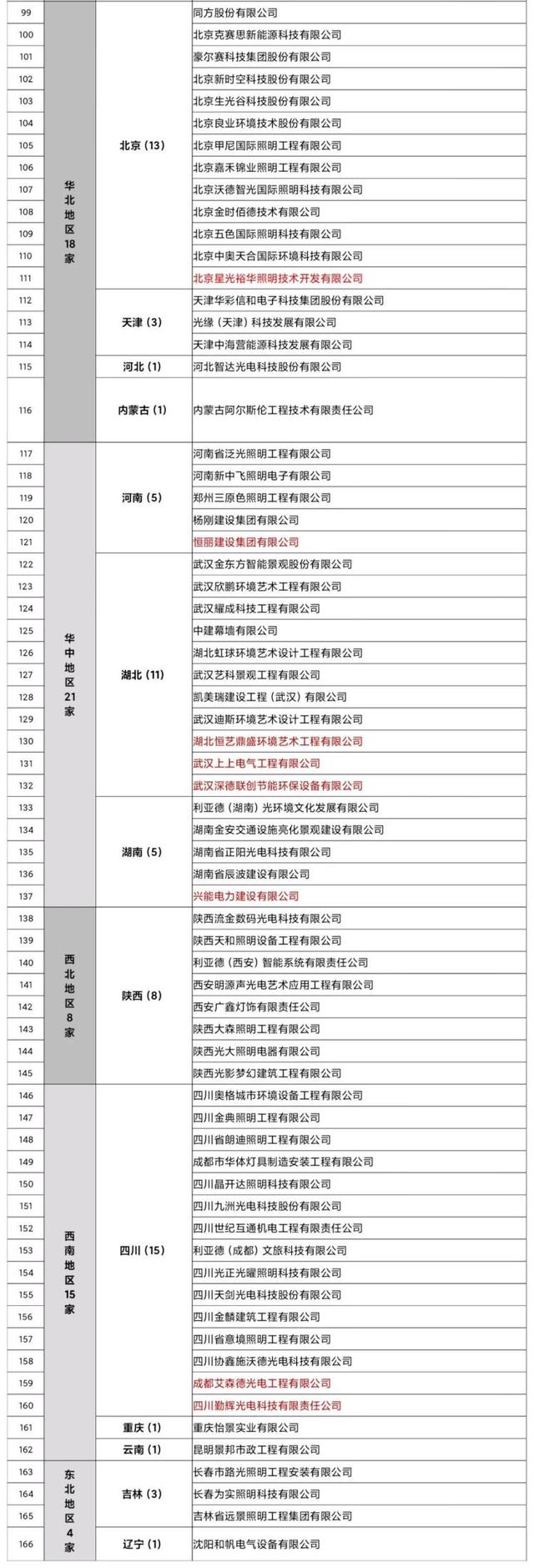 截止目前,全國擁有照明雙甲資質的企業達到166家,分布在我國七大區域,其中華南38家,華東60家,華北18家,華中21家,西北8家,西南17家,東北4家。