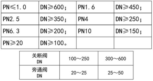 (3)手動閘閥,滿足以下條件設旁通閥;