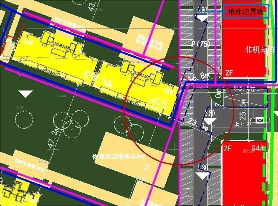 局部地庫邊界線給雨污水專業(yè)的跌水井讓出空擋,如圖。