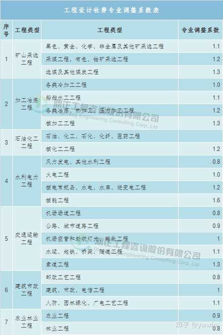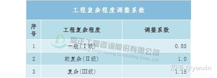 工程復雜程度調整系數:0.8~1.2(工程復雜程度具體調整系數由工程咨詢機構與委托單位根據各類工程情況協商確定)。