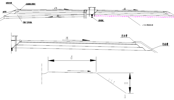 6.倒虹吸與渡水槽:當水流需要橫跨路基,同時受到設計標高的限制,可以采用管道或溝槽,從路基底部或上部架空跨越,前者稱倒虹吸,后者為渡水槽,分別相當于涵洞和渡水橋。兩者屬于路基地面排水的特殊結構物,并且多半是配合農(nóng)田水利所需而采用。