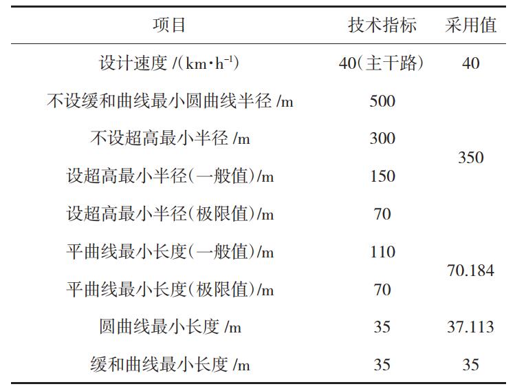 表 1 平面線形標(biāo)準(zhǔn)及設(shè)計(jì)采用值匯總