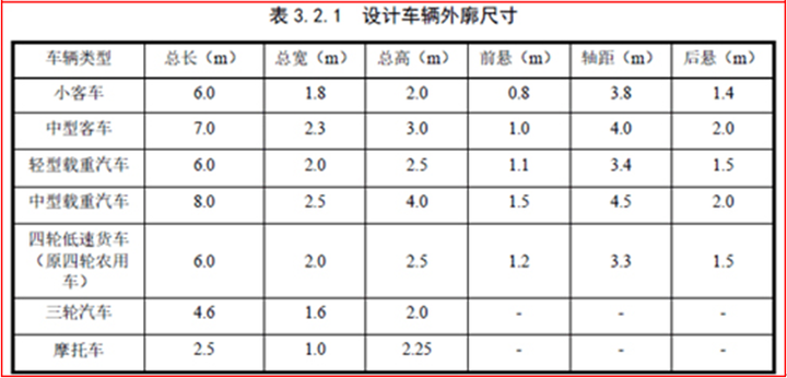 《規范》表3.2.1 設計車輛外廓尺寸