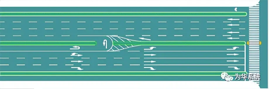 圖5 縮小中分帶寬度并壓縮車道寬度設置左轉(zhuǎn)專用車道