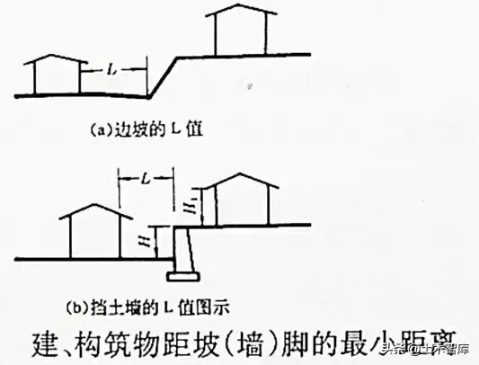 1、 居住區內的擋土墻與住宅建筑的間距應滿足住宅日照和通風的要求; 2 、高度大于2m的擋土墻和護坡的上緣與建筑間水平距離不應小于3m,其下緣與建筑間的水平距離不應小于2m。