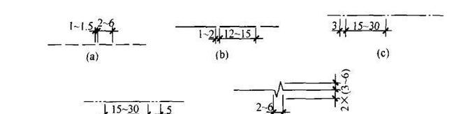 4)虛線、長虛線、點畫線、雙點畫線和折斷線應按圖2-3繪制。