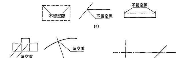 ②當實線的延長線為虛線時,應留空隙,見圖2-4(b).
