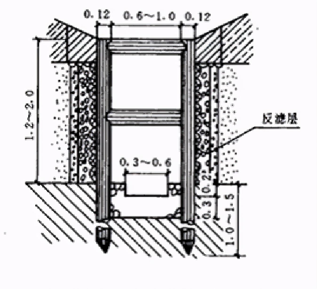 ② 截水滲溝應在滲流上游一側溝壁進水、下游處溝壁應不透水并設置相應的防滲層;