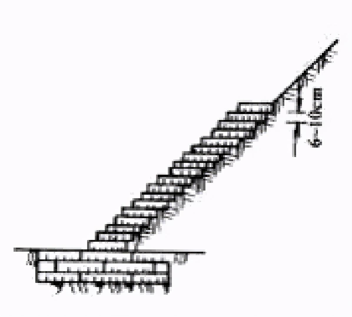 - 通常使其軸線與滑動方向基本平行,布置成平行的條帶狀,支撐滲溝的間距及斷面寬度,可按照每條滲溝所擔負的下滑力計算確定。斷面采用矩形,寬度為2~3m,間距為8~15m或更大些。